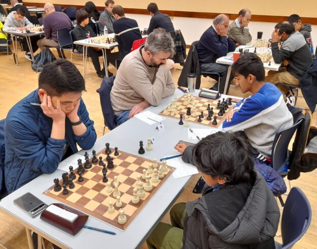 In a difficult week for Kingston – with defeats for the first team against Hammersmith and the second team against Surbiton – this victory for Kingston 4 against Coulsdon 3 in the Surrey Minor Trophy provided a chink of light. But it was mighty close against a young and enthusiastic Coulsdon team, with Kingston winning 3.5-2.5.