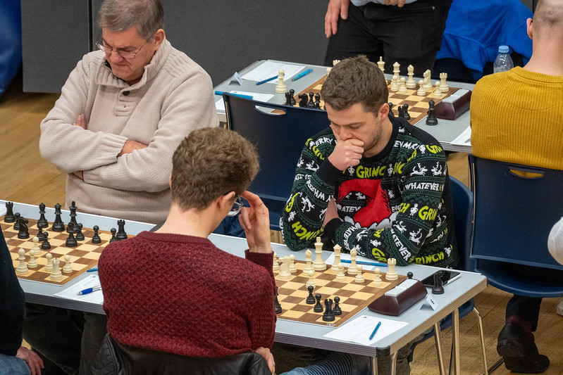 My own game on board 8 against the fast-rising junior Lev Razhnou was an uphill struggle from early on which required my full attention, so the following account rests on the game scores rather than being able to report rising tension and depression through the evening.