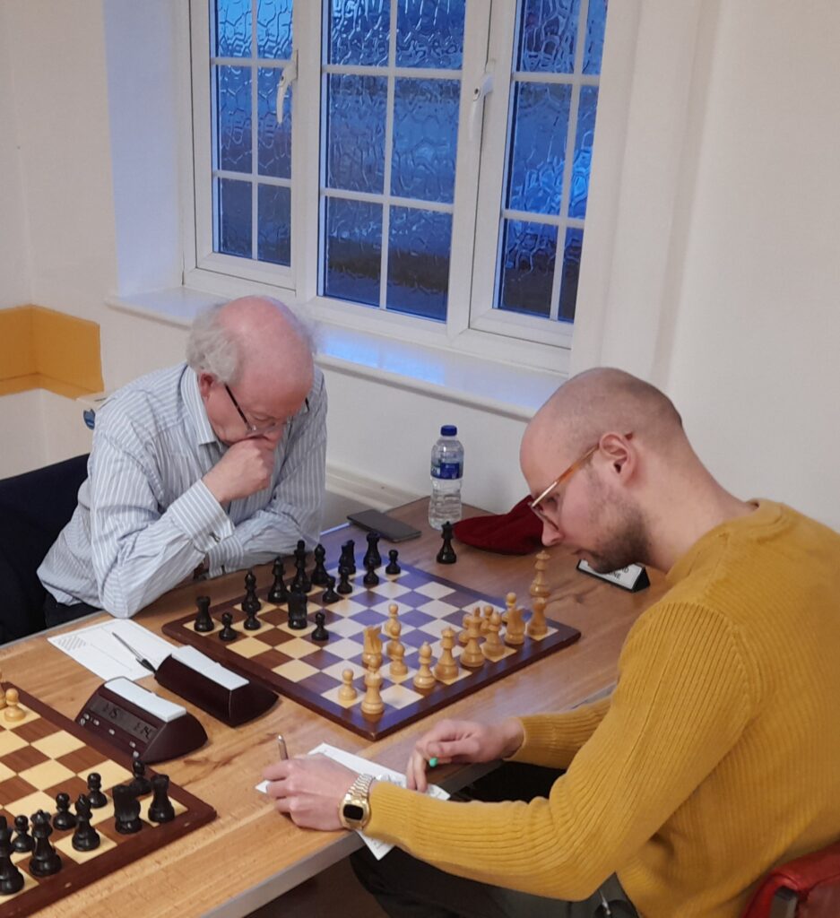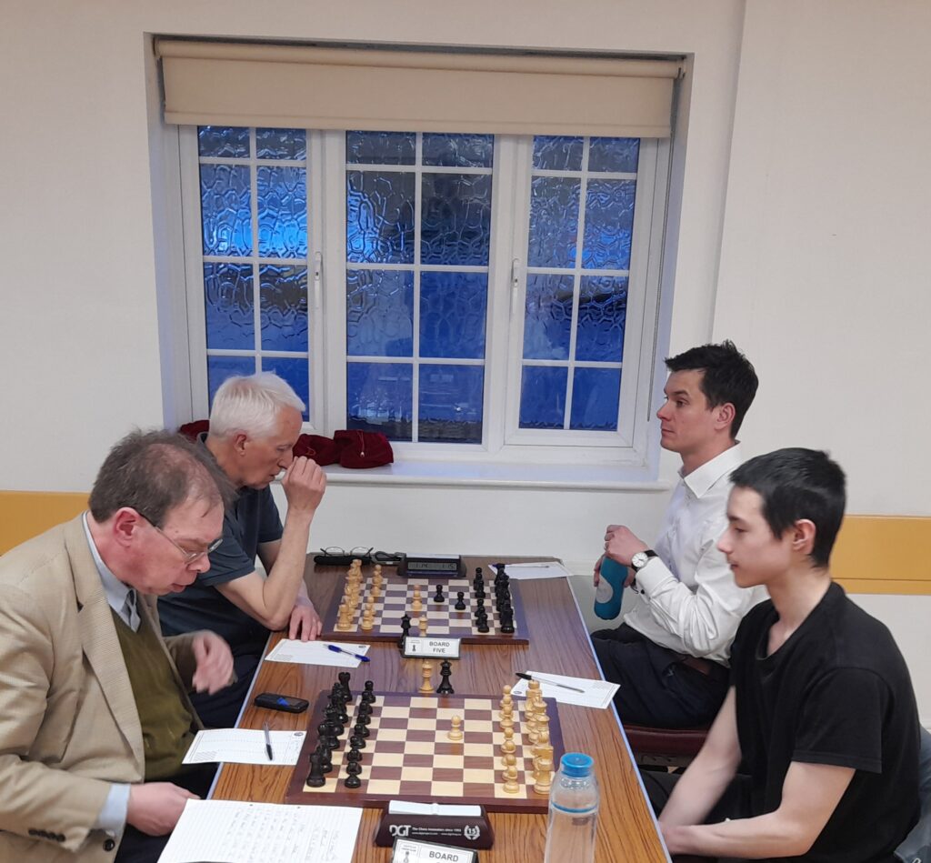That left us 3.5-2.5 ahead, and, with at least one match point in the bag, fine calculations around game points became academic. As it turned out, Martyn Jones on board 5 was able to seal the win in an entertaining though unrecorded finish against Tom Barton.